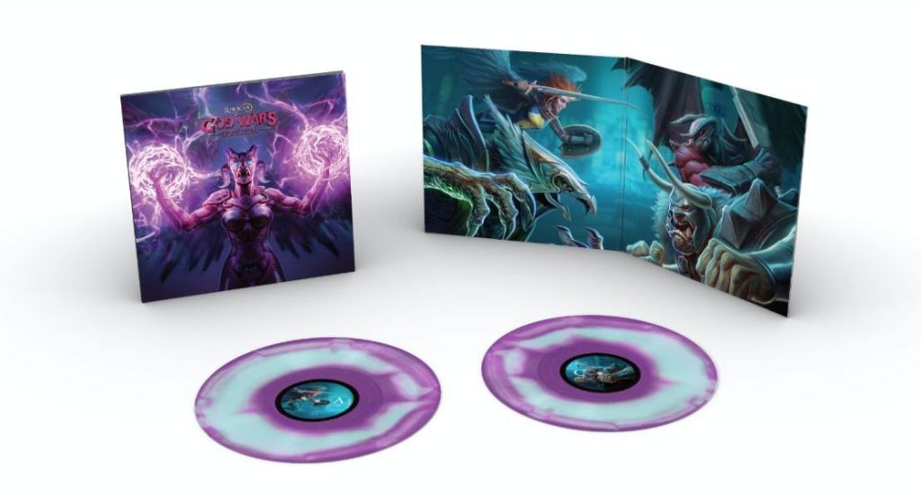 RuneScape: God Wars Dungeon is also releasing on CD and vinyl – the CD release will be on one disc whereas the vinyl edition will be pressed on two 180g turquoise blue-and purple patterned discs. The double-vinyl variant will also include a peelable sticker.