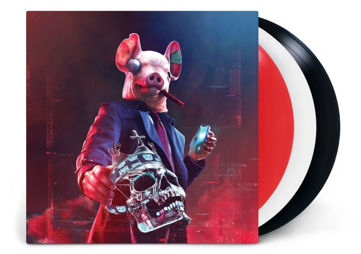 This triple-vinyl release contains five music sides with the sixth side displaying an etched design of the DedSec pig mask.